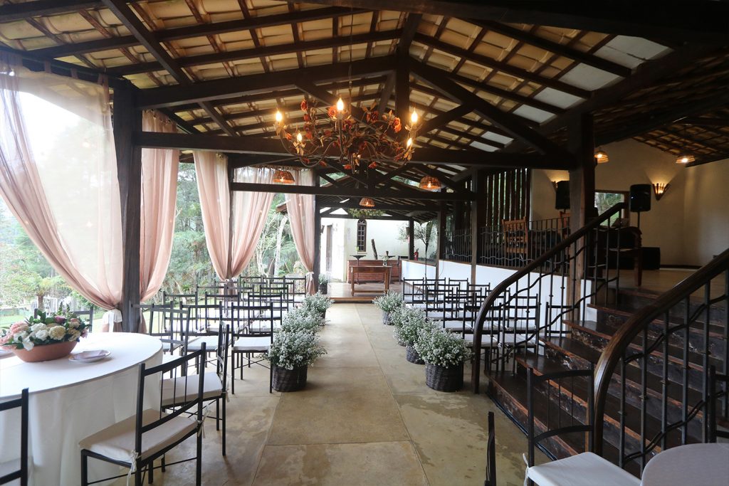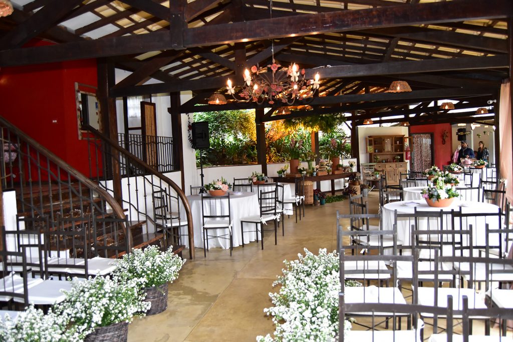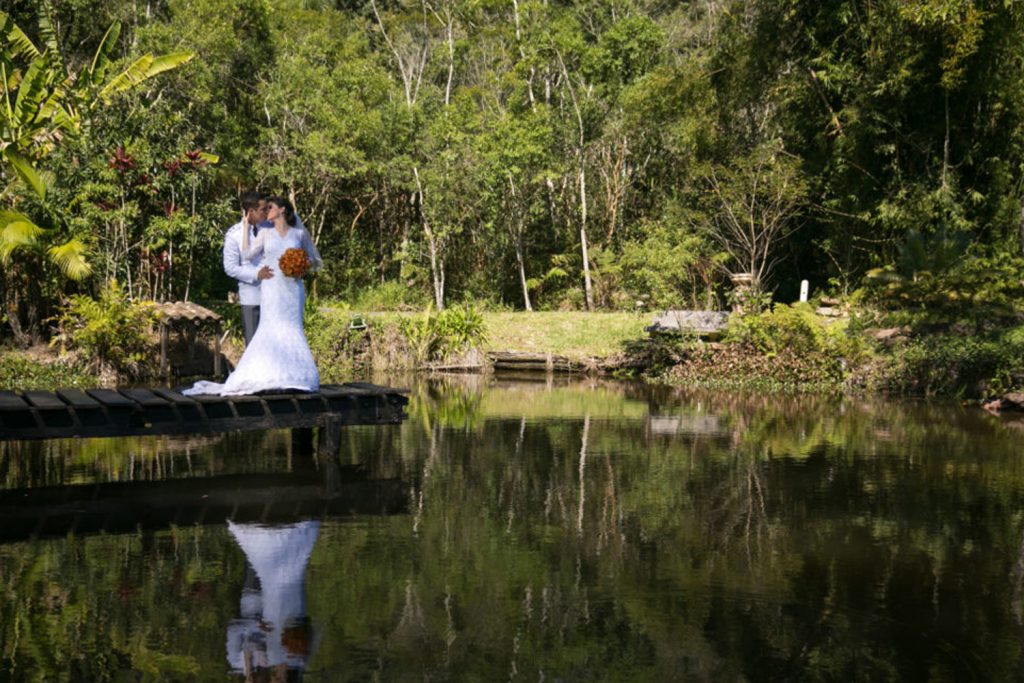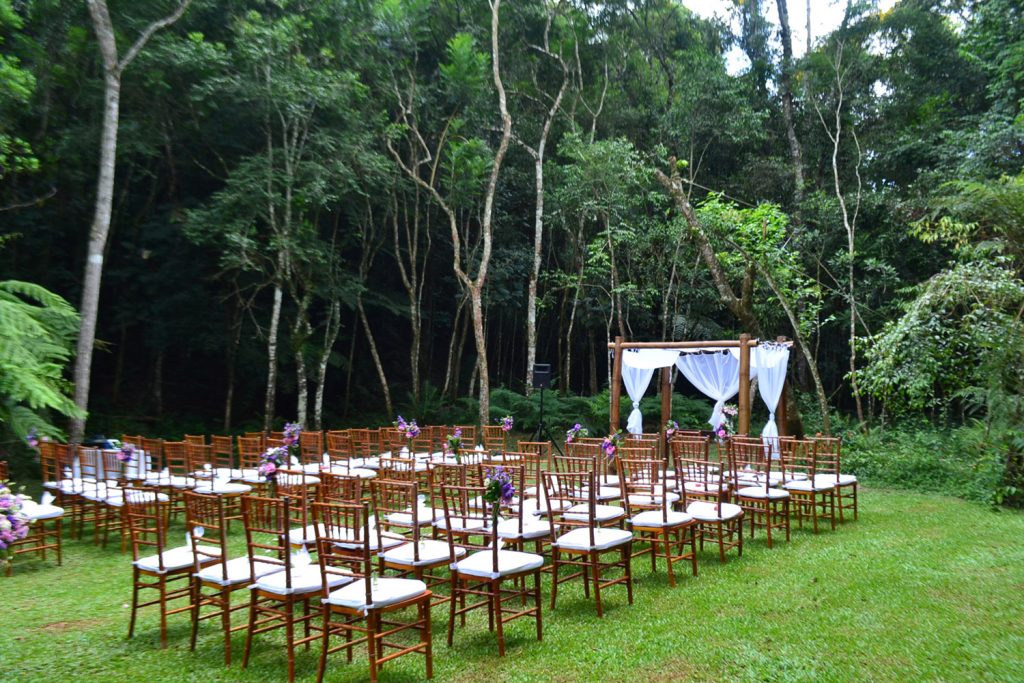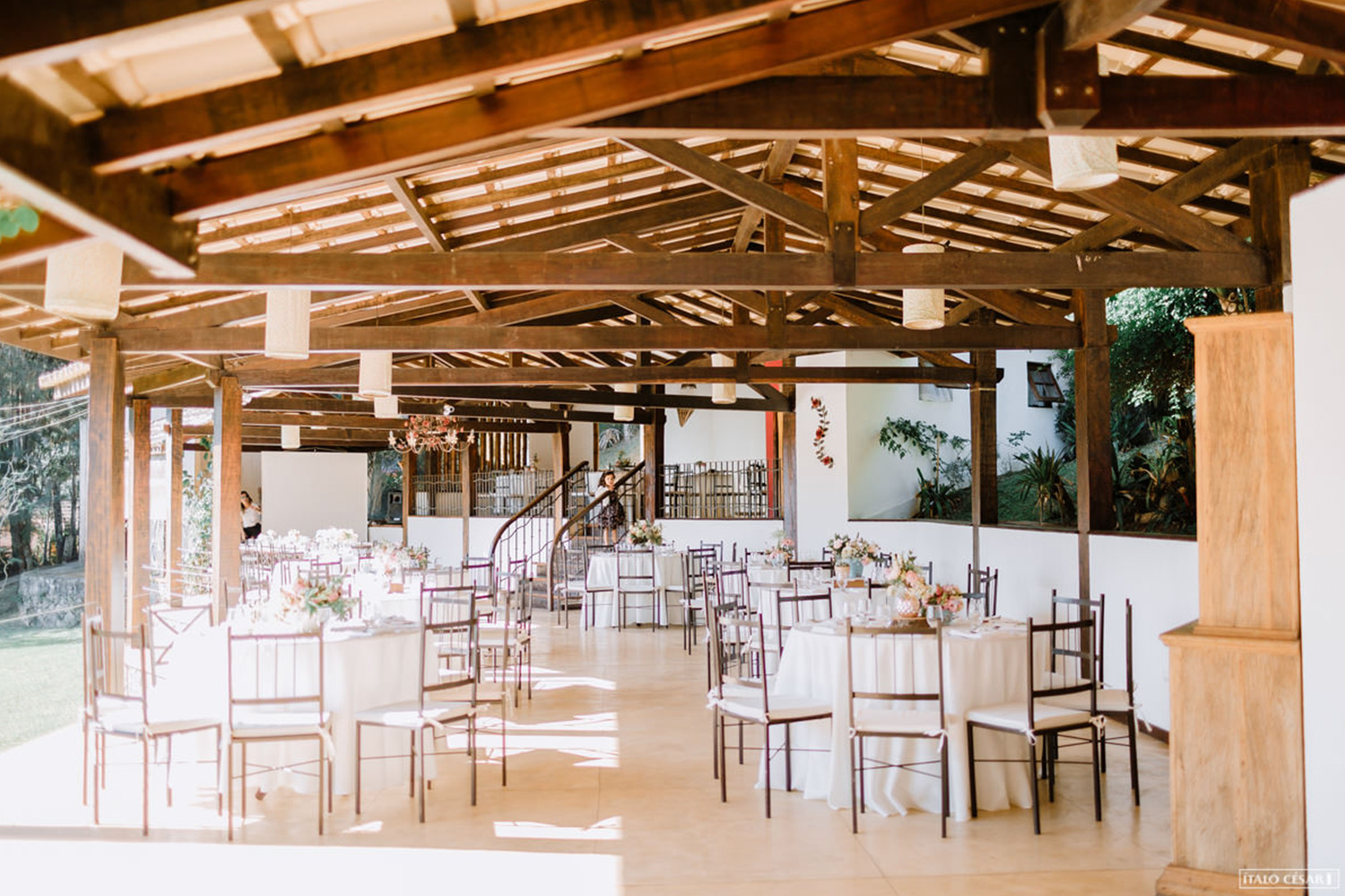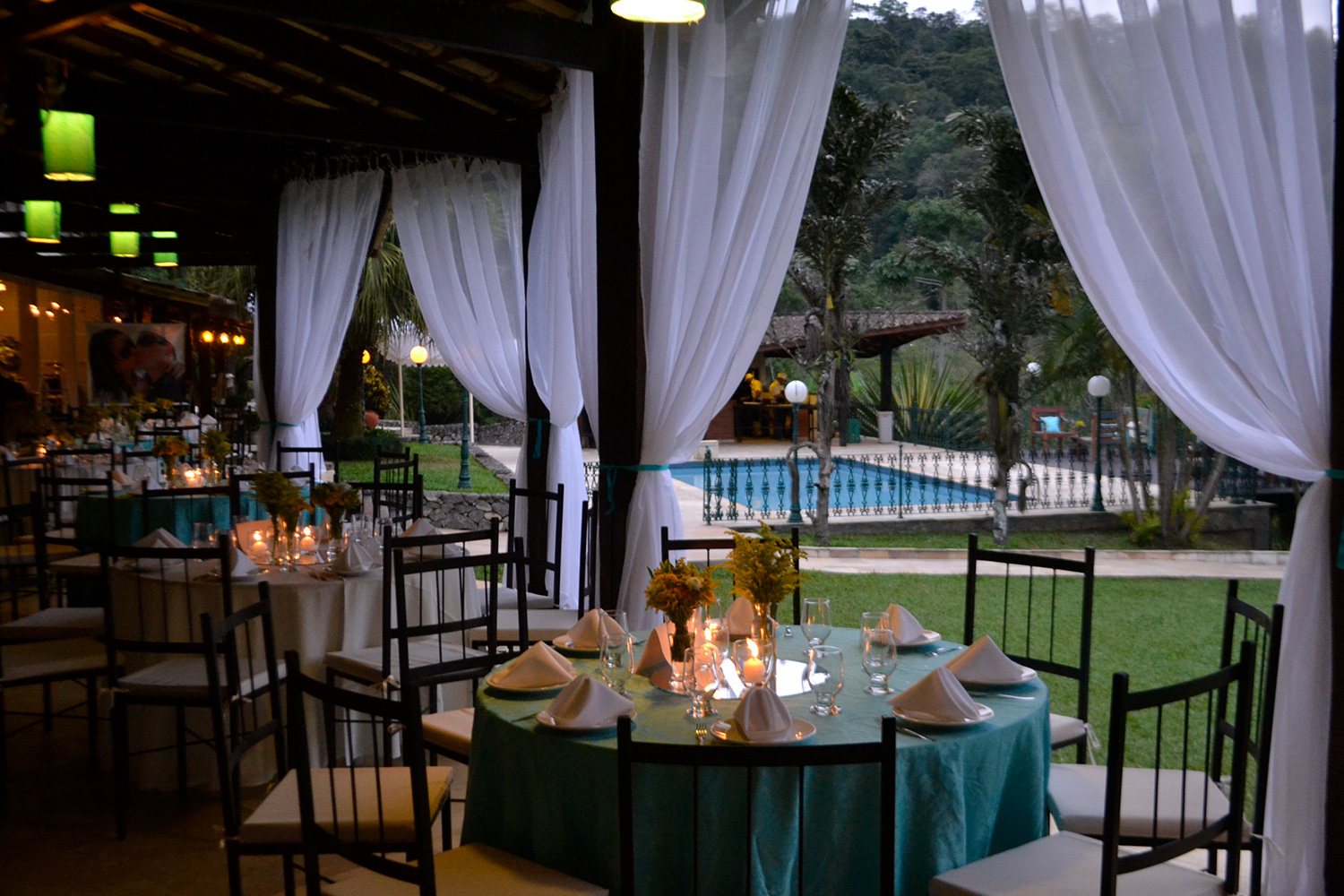 Estacionamento gratuito, salão para recepção integrado a natureza, lounge na piscina, lagos, casa da noiva decorada.