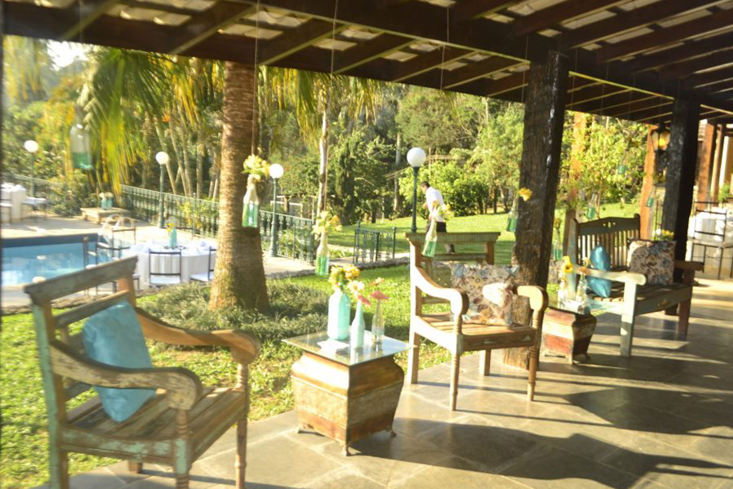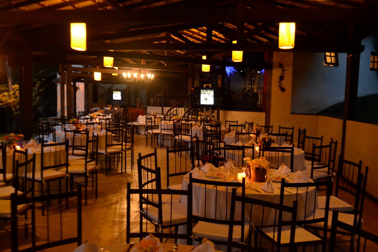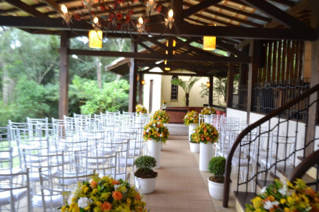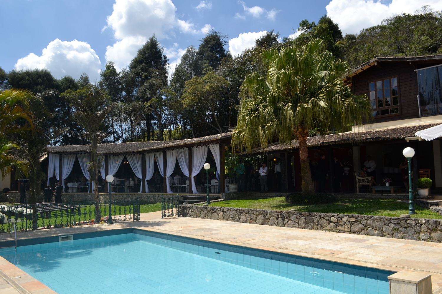 Estacionamento gratuito, salão para recepção integrado a natureza, lounge na piscina, lagos, casa da noiva decorada.