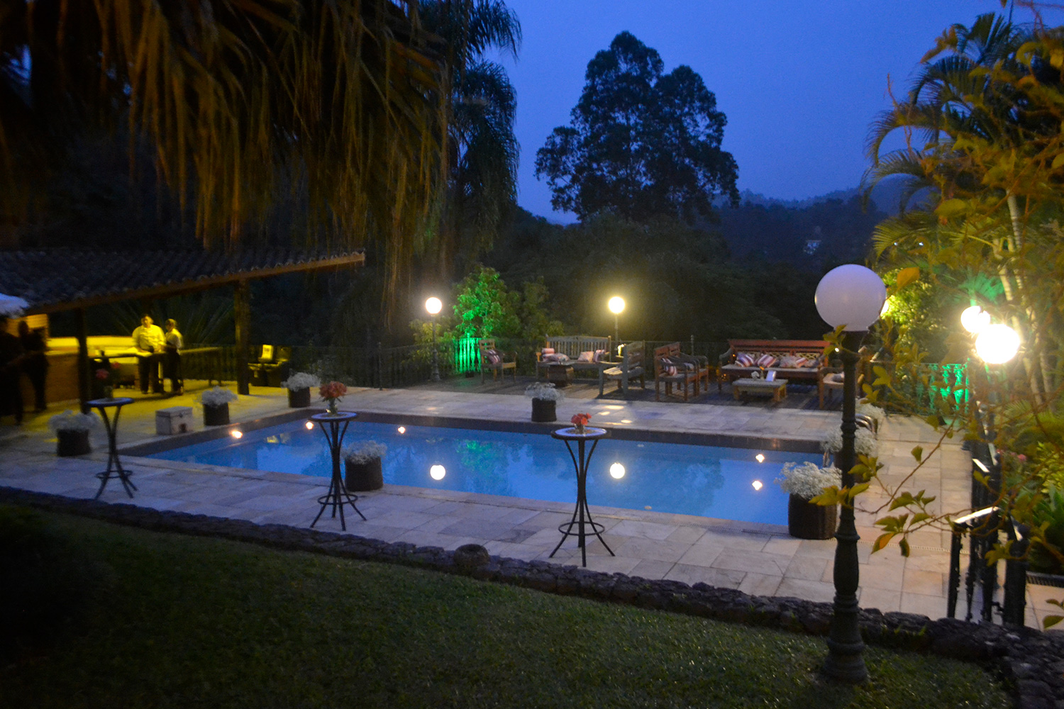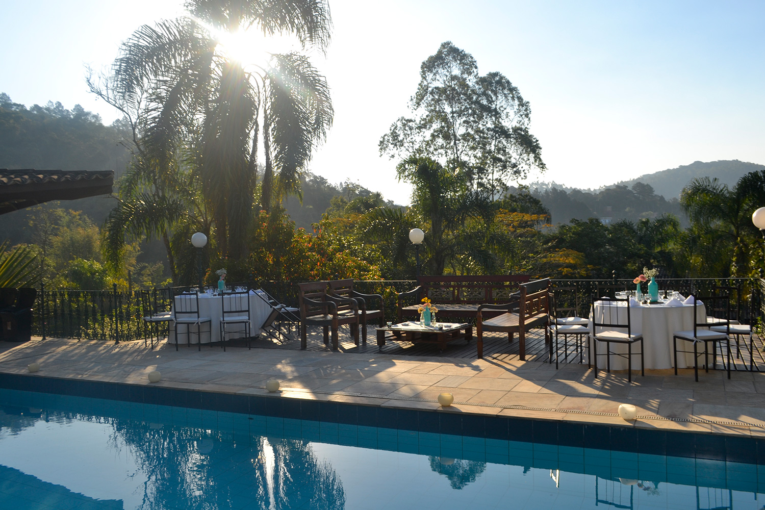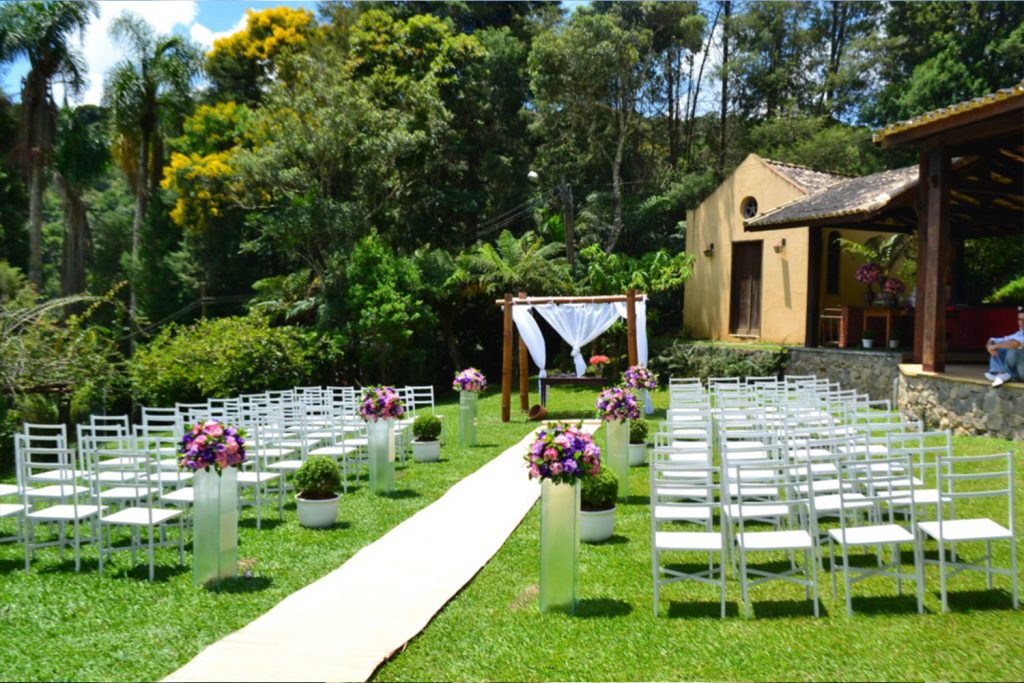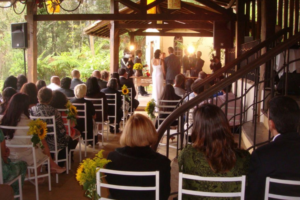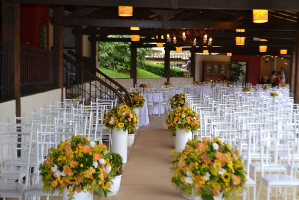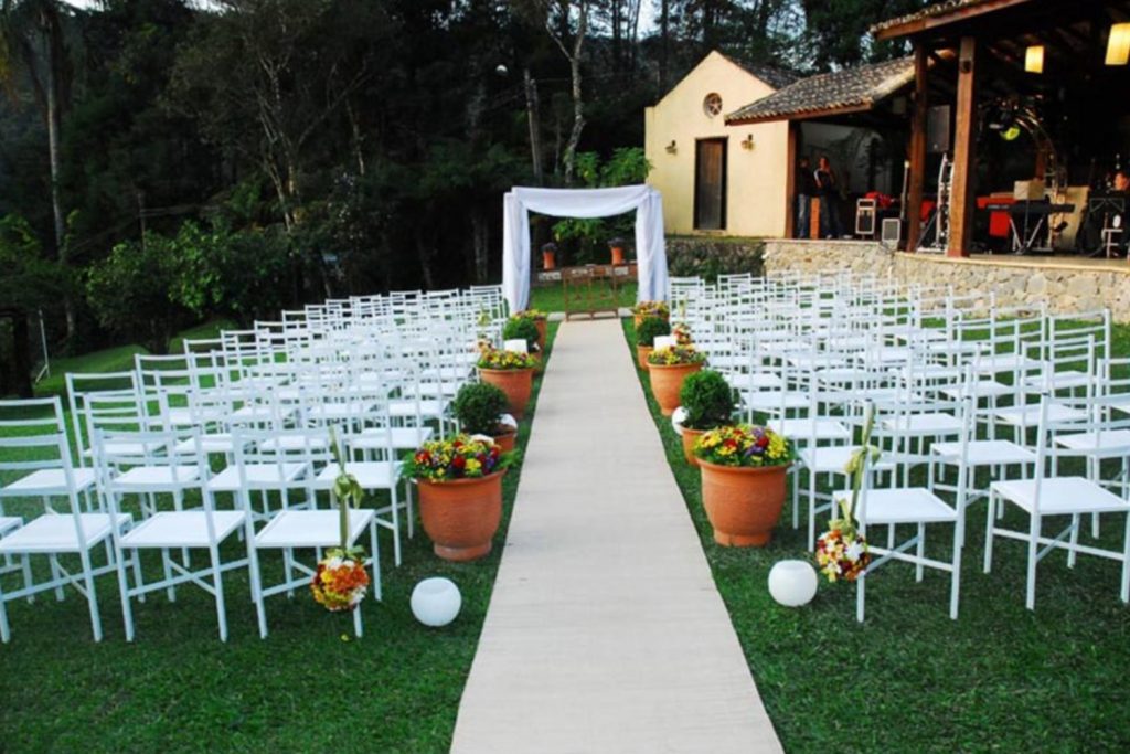 Estacionamento gratuito, salão para recepção integrado a natureza, lounge na piscina, lagos, casa da noiva decorada.
